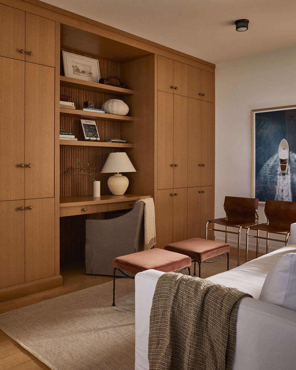 Full scale transformation designed for elevated coastal living. With a strong focus on deep tones that highlight sun rays and warmth, this three story townhouse is the perfect vacation home for a family looking to escape the bustling city.